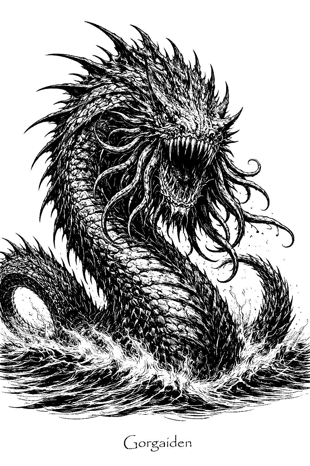 폭풍 속에서 고르가이던의 꼬리가 천천히 파도를 휘저으니 폭풍의 중심이 일그러졌다.